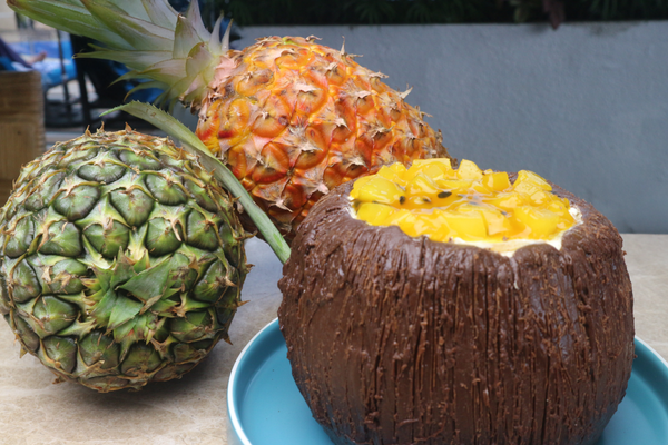 Expertly sculpted into the shape of a coconut and encased in a smooth milk-chocolate shell, this show-stopping creation is crowned with a luscious pineapple topping